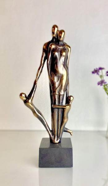 The sculpture stands on a square, burnished bronze base.