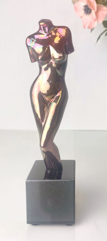Beautiful female torso with long legs in black, glossy patination in bronze by Stiig Kalsing.