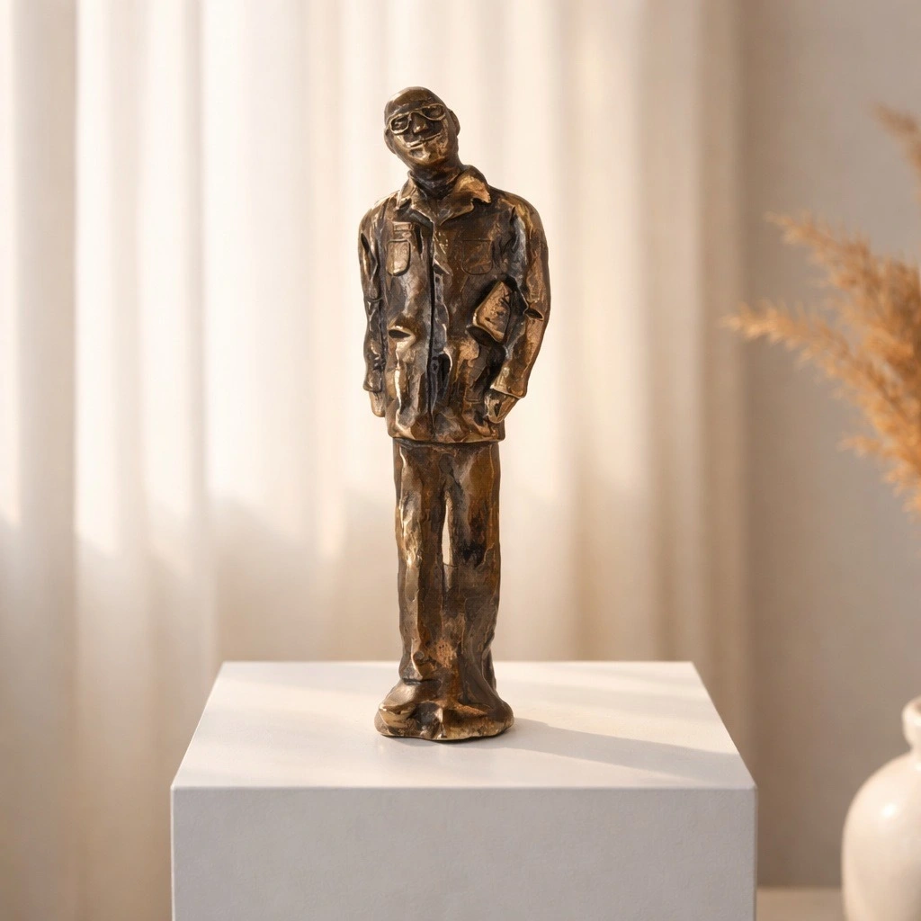 "Don't worry, be happy" in burnished bronze by Mian Kalsing