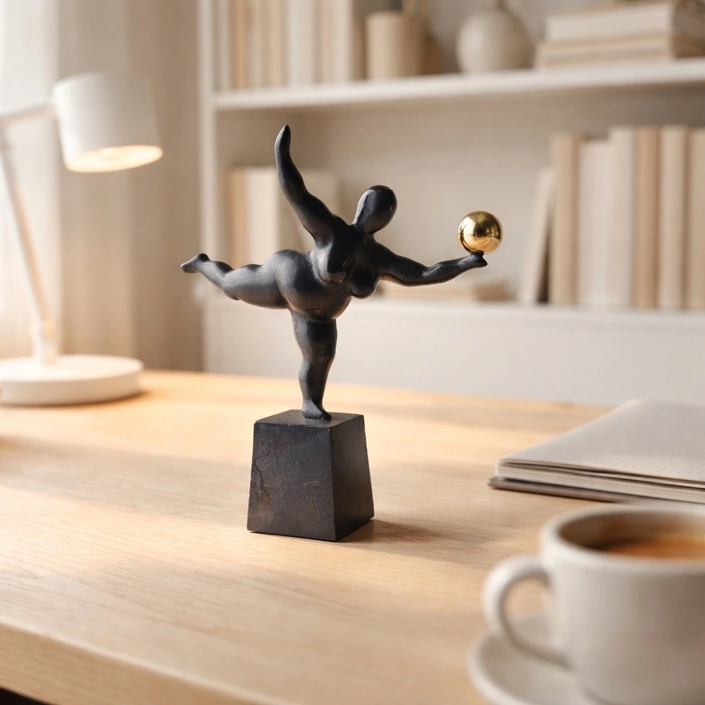 Aunt Johanne in bronze by Stiig Kalsing. Height 20 cm. The sculpture has a black patina with a polished and lacquered bronze ball. Aunt Johanne stands fixedly mounted on a bronzed bronze foot.
