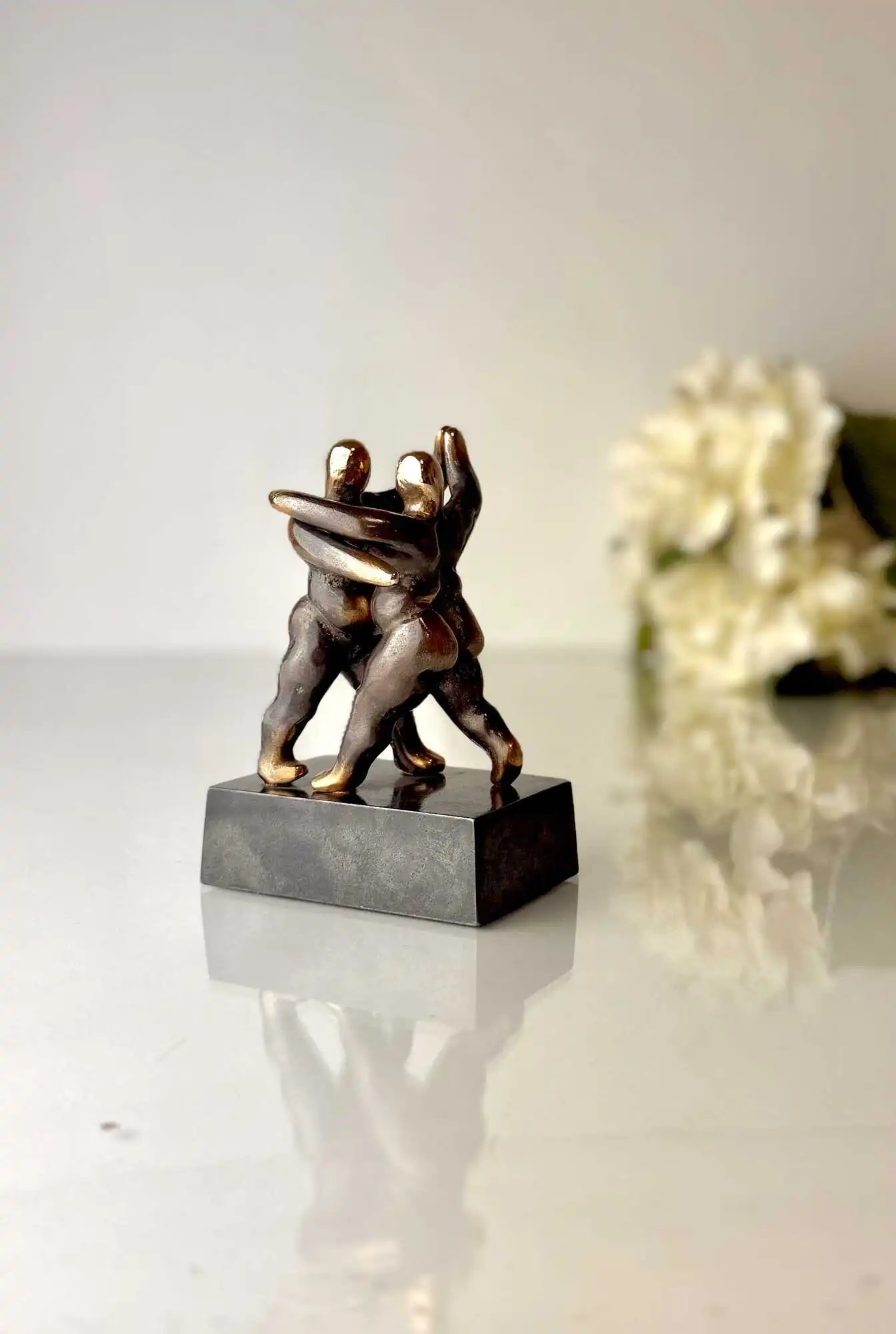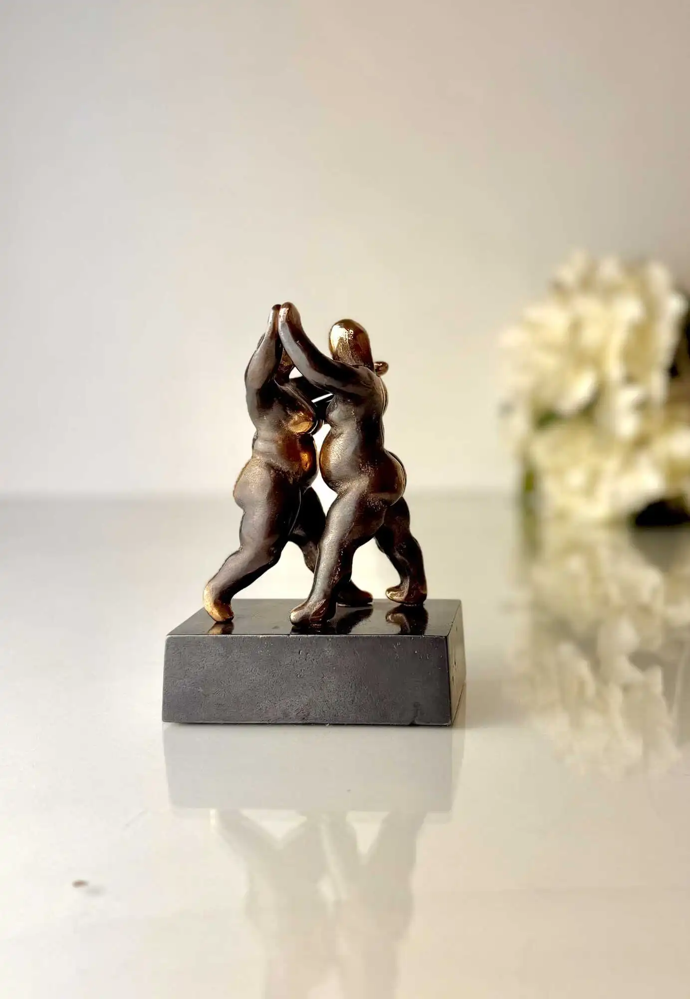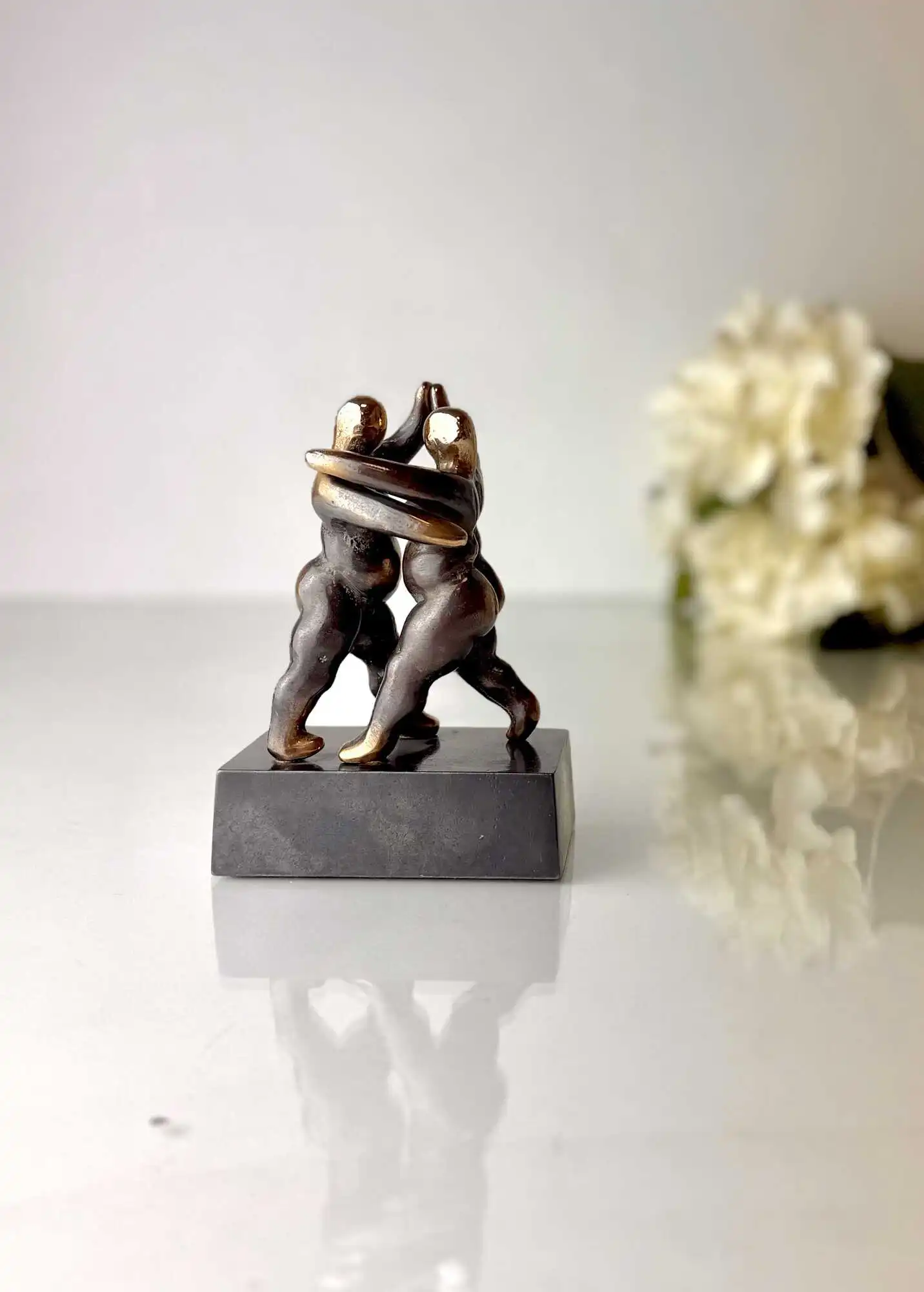 De to figurer der danser vals, står fastmonteret på en bruneret bronzesokkel.